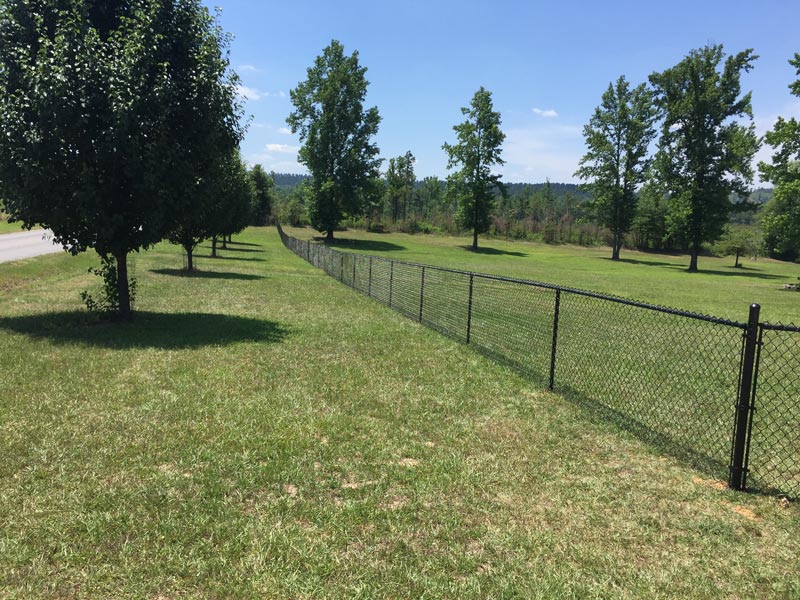 Chain link fencing is a common choice for commercial uses, temporary fences, schools or fields, and retention ponds.